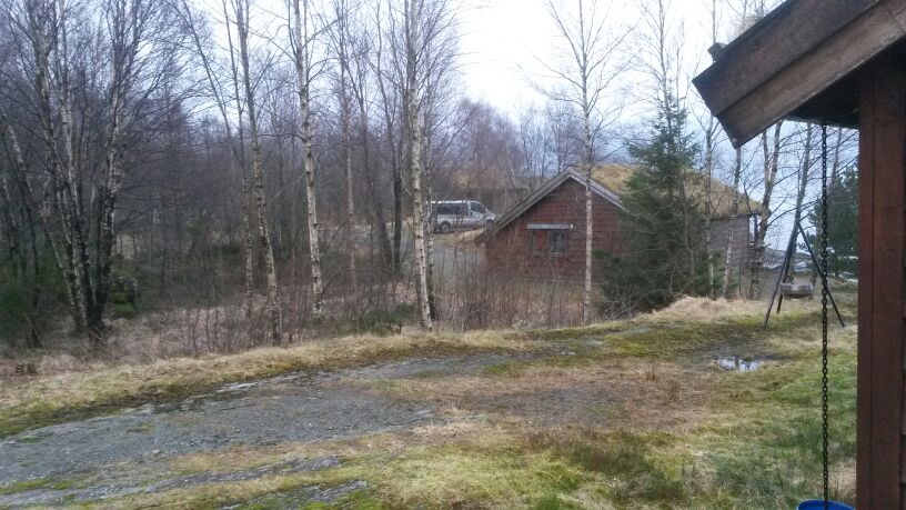 Berühmte norwegische Unterkunft, im Hintergrund ein berühmter norwegischer Transporter für den Transport der Auszubildenden zu den Baustellen