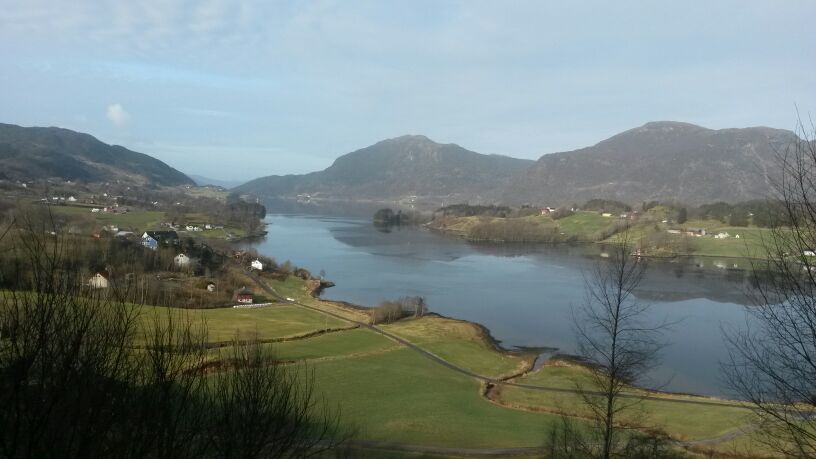 Berühmte norwegische Landschaft I (mit berühmten norwegischen Unterkünften in der Ferne)