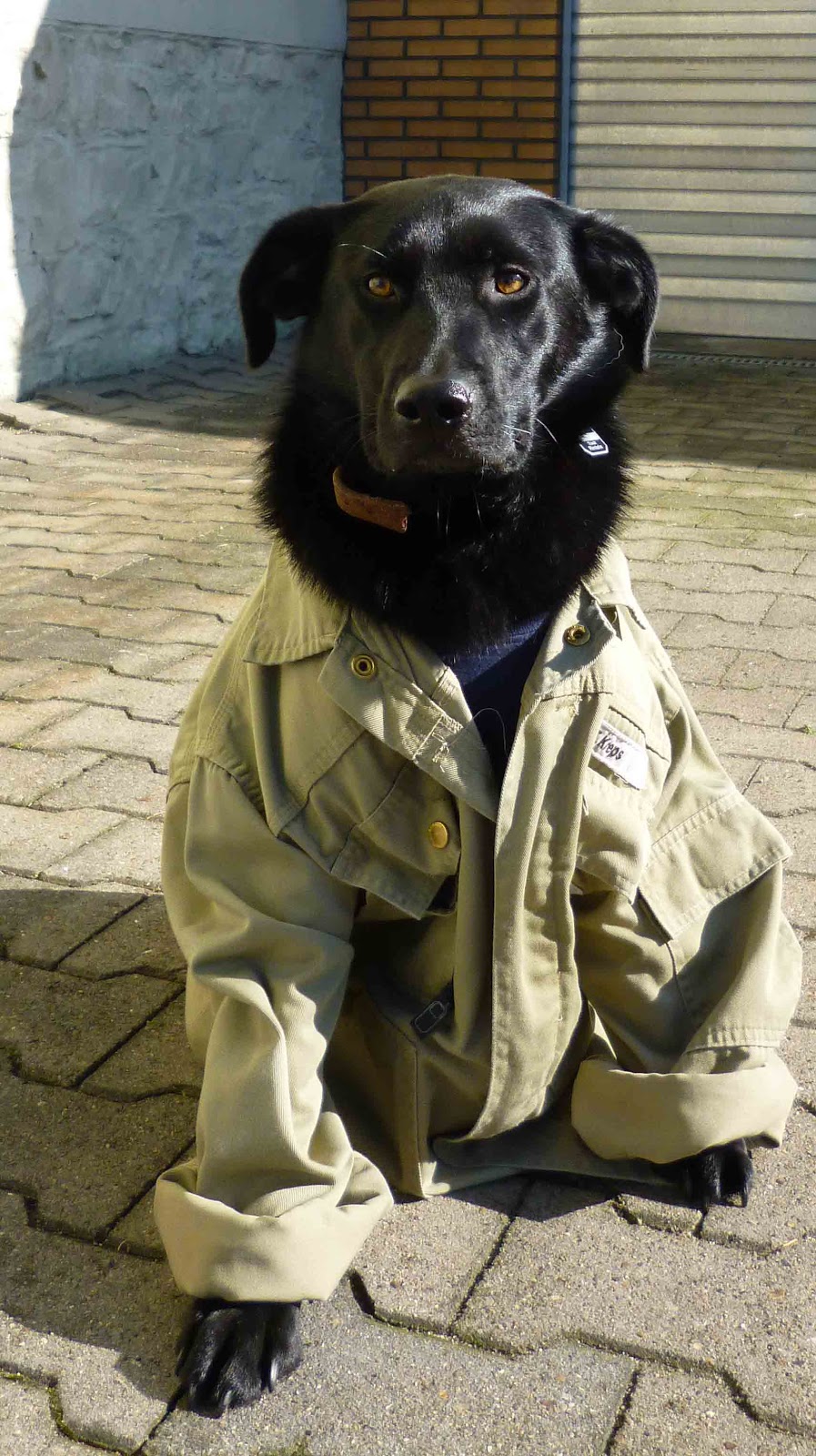 Assistenz beim Bilderchen machen. Azubi sei dank kam dann unter anderem folgendes heraus: der Tischlerhund in betriebseinheitlicher Kleidung.