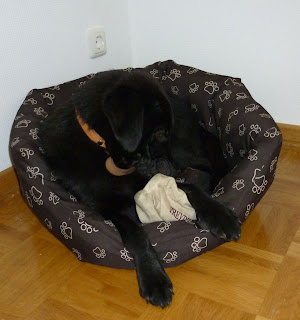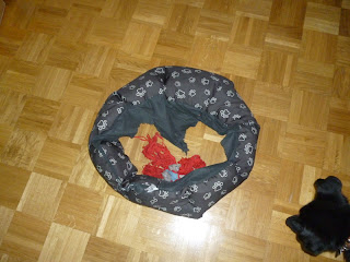 Mittlerweile finde ich das Spielchen so klasse, dass ich auch mit vollem Magen den Beutel begeistert zurückbringe, einfach, weil es sooo einen Spaß macht. Sogar mein heißgeliebtes Lieblingsspielzeug, dass ich sonst immer vor allen Leute verstecke und in Sicherheit bringe, wird zurückgebracht.